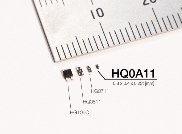 Our longtime partner Asahi Kasei Microdevices (AKM) introduces its latest ultra-compact next-generation InAs (indium arsenide) compound Hall element: the HQ0A11. Measuring 0.8 x 0.4 x 0.23 mm, the HQ0A11 features the smallest and thinnest package for an InAs-based Hall element.