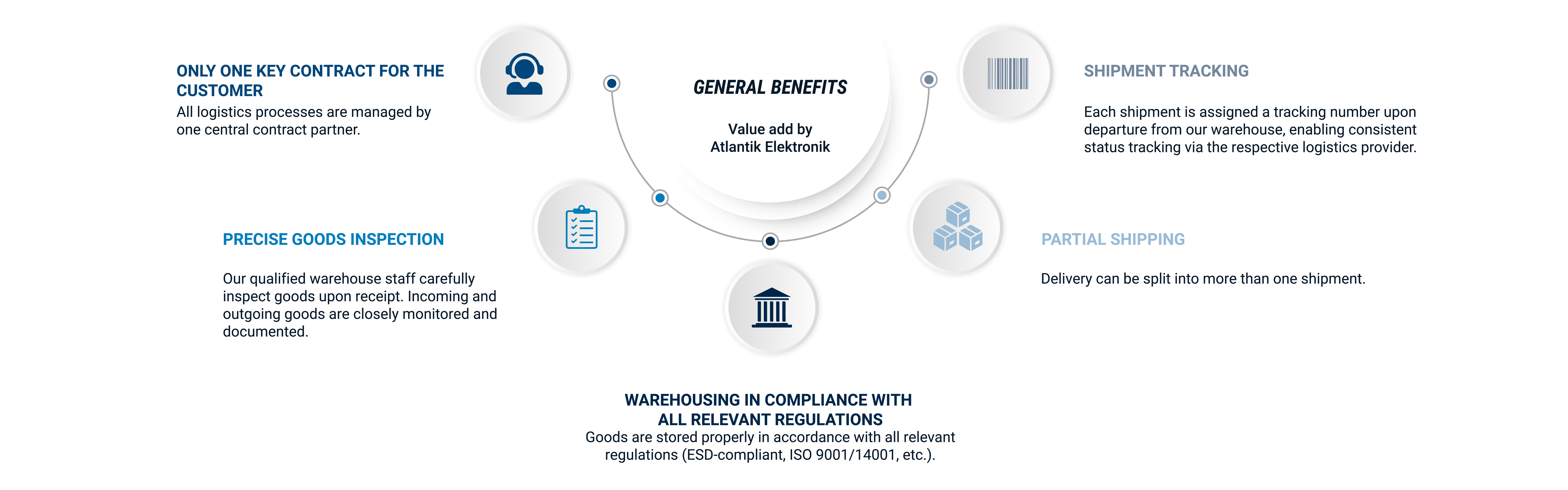 Thanks to our main warehouse in Planegg near Munich and our buffer stock, we can access products from our partners and manufacturers at short notice and quickly supply even embedded products, which can often only be delivered in up to 20 weeks.
