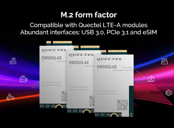 Development samples of Quectel's RM502Q-AE, RM500Q-AE and RM505Q-AE are available promptly from Atlantik Elektronik.