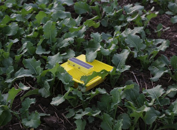 So-called yellow traps help farmers detect and assess pest infestations. Insects fly specifically to the traps, as the color resembles canola blossom, and fall into a pool of water where they can be counted. However, evaluating and maintaining analog insect traps involves a lot of manual labor. The "MagicTrap" presented by Bayer counts and recognizes the insects fully automatically.